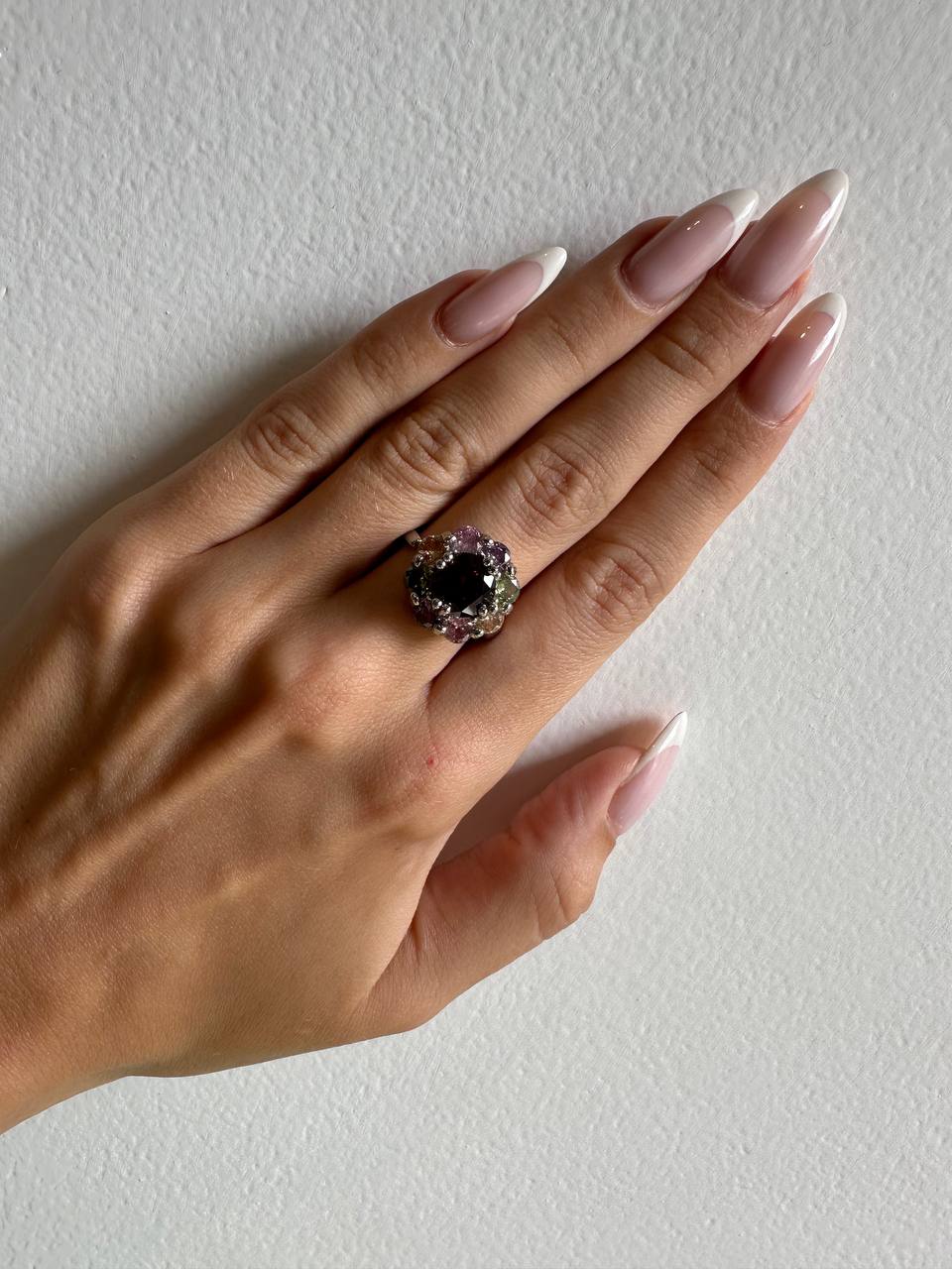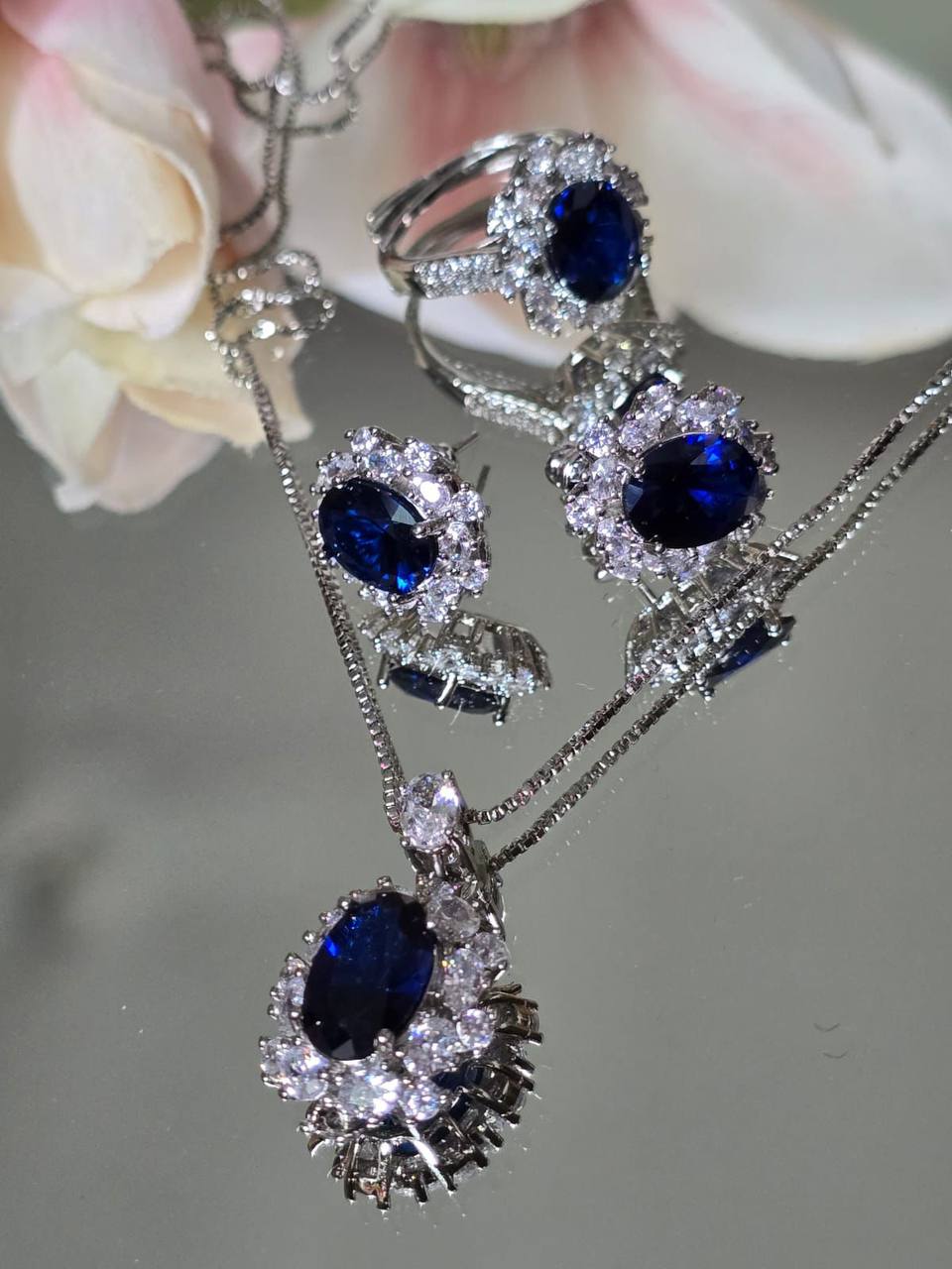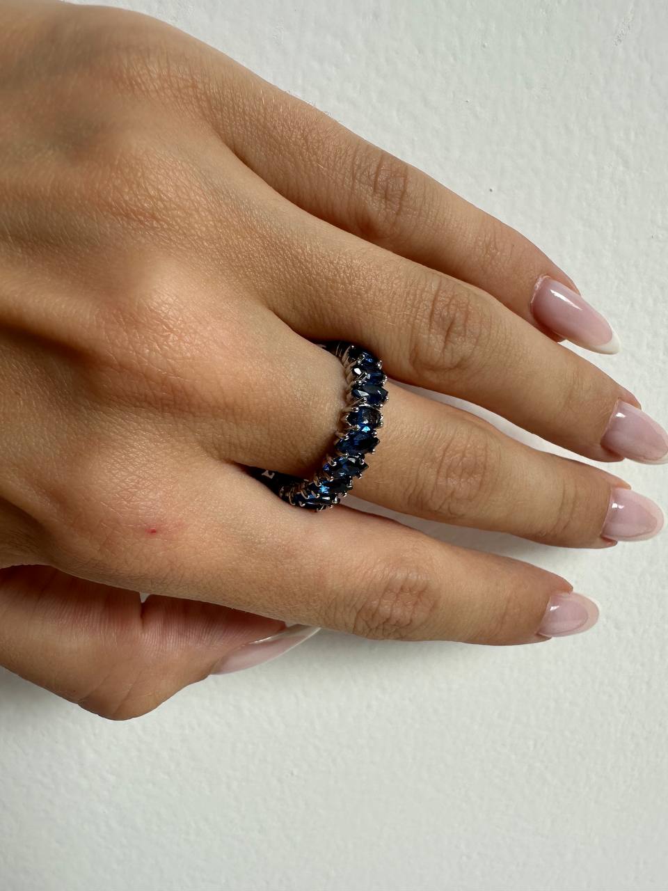Кольцо с синем сапфиром, в обрамлении цирконов