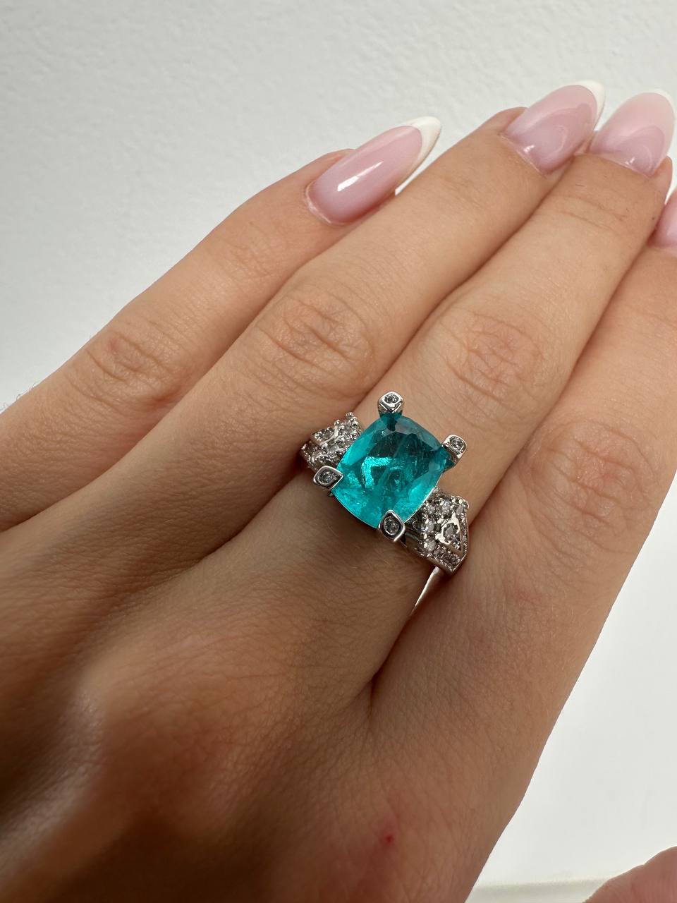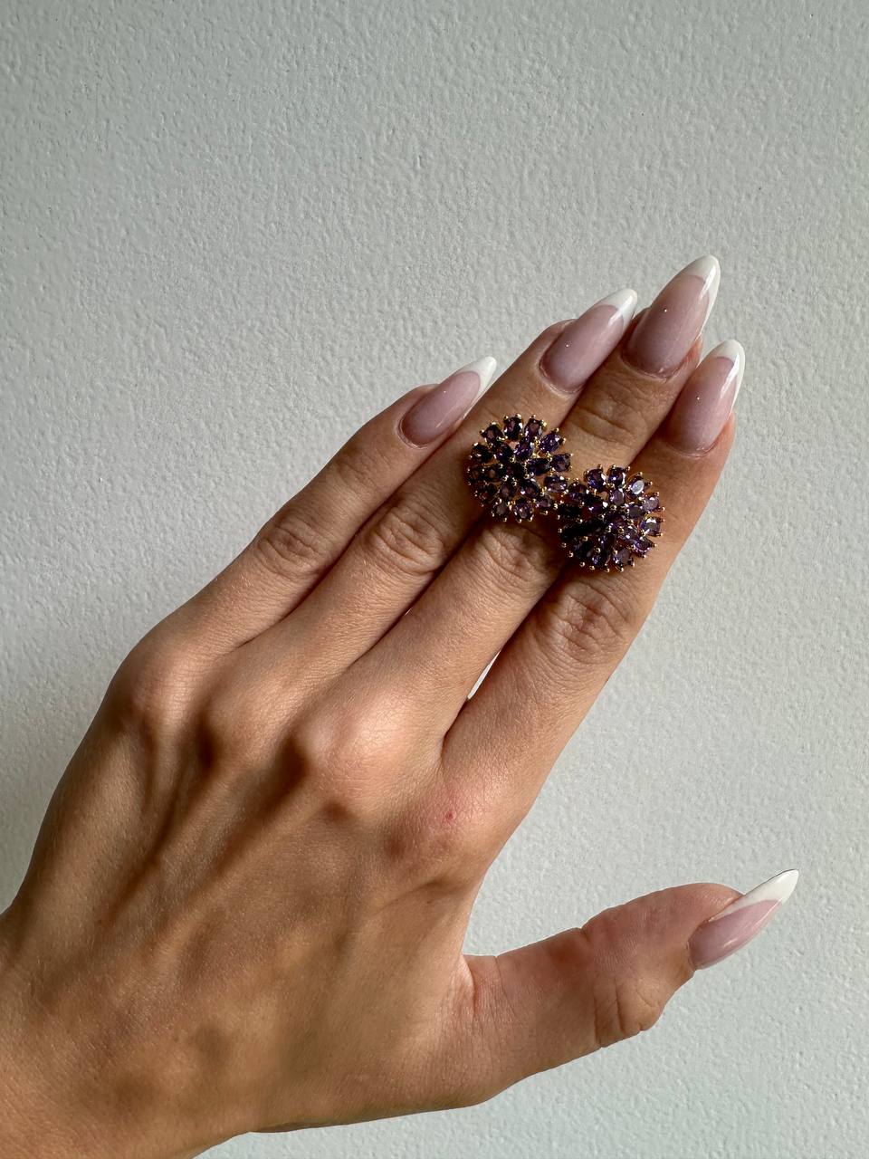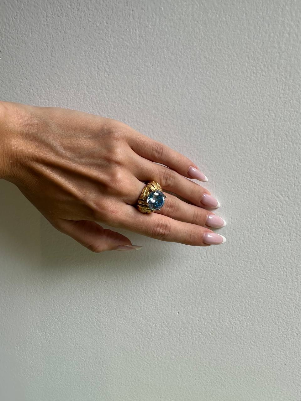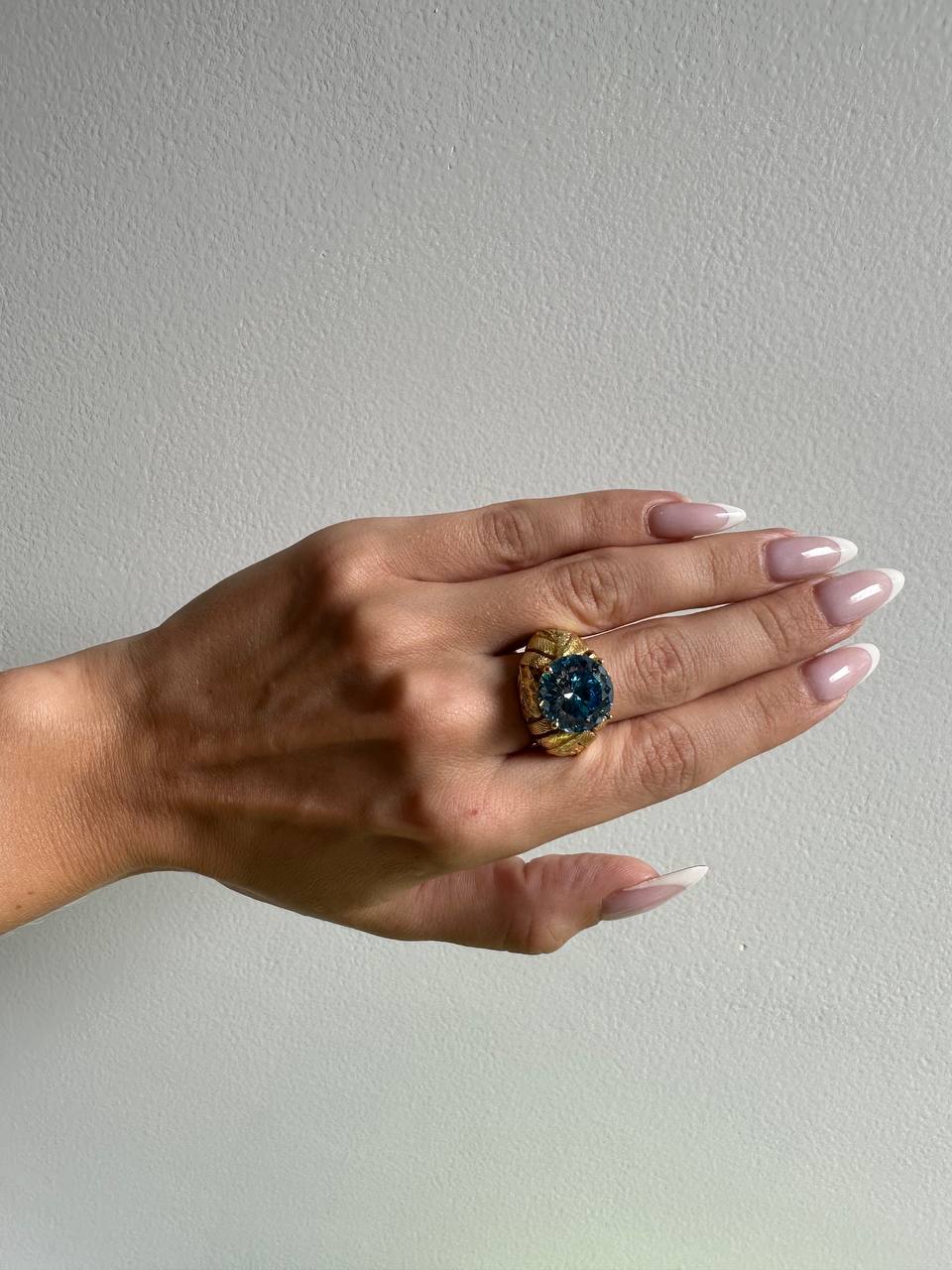 Кольцо с синем сапфиром, в обрамлении цирконов