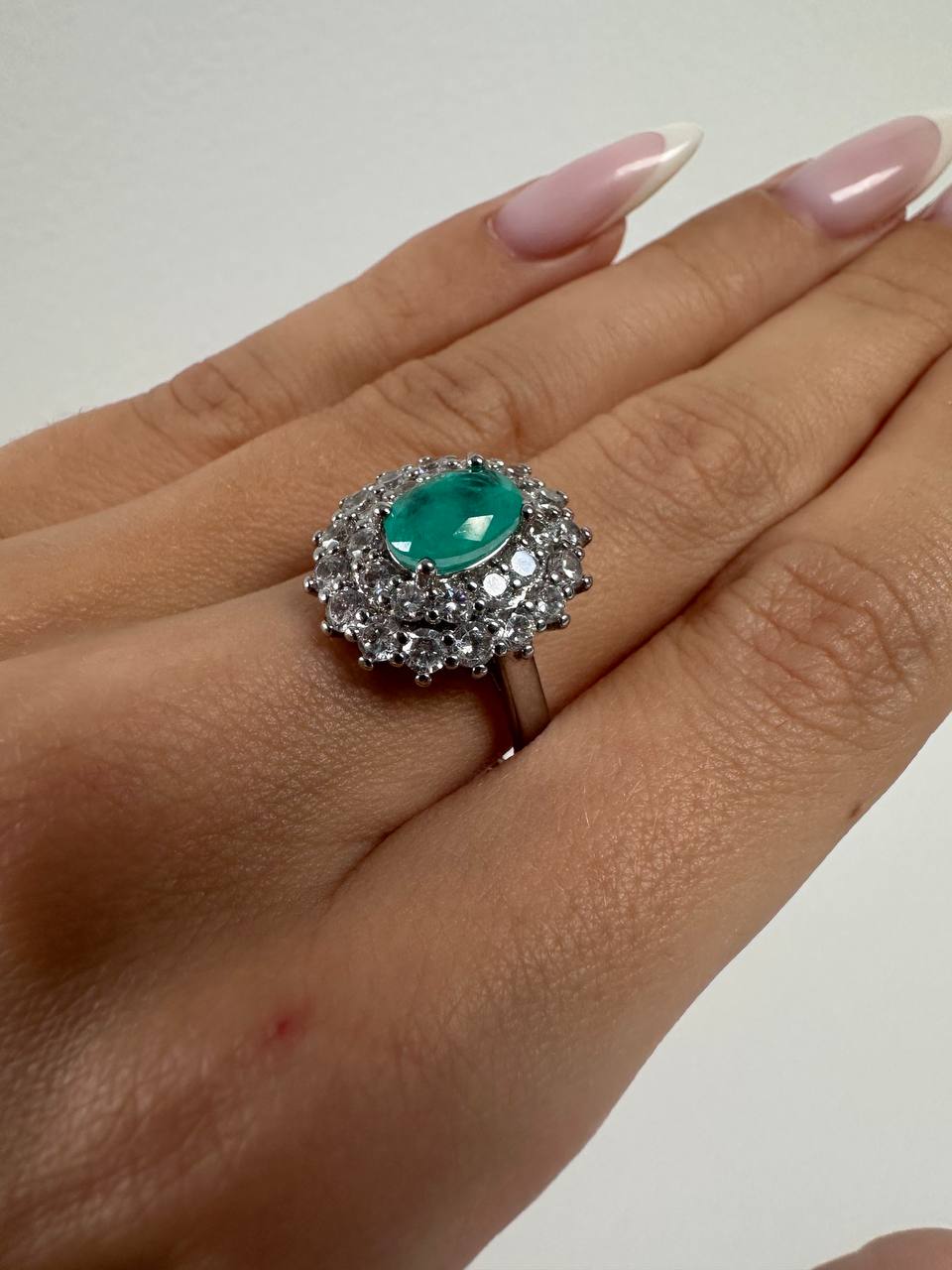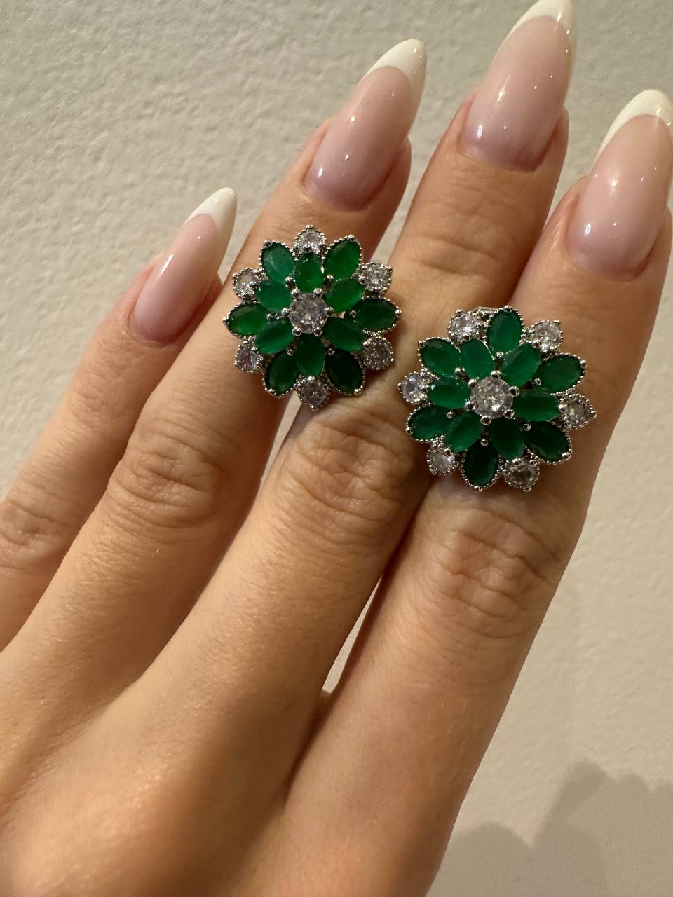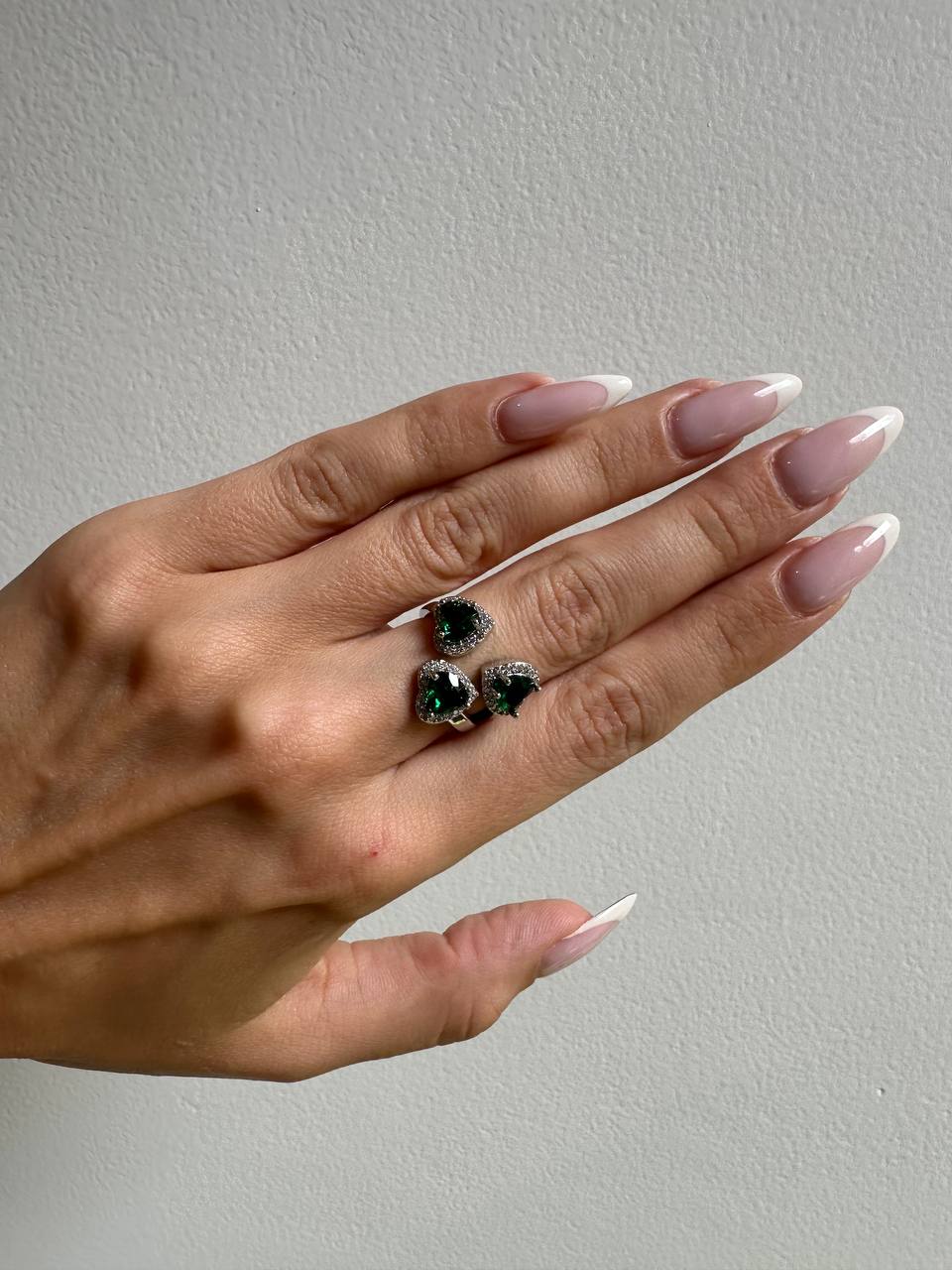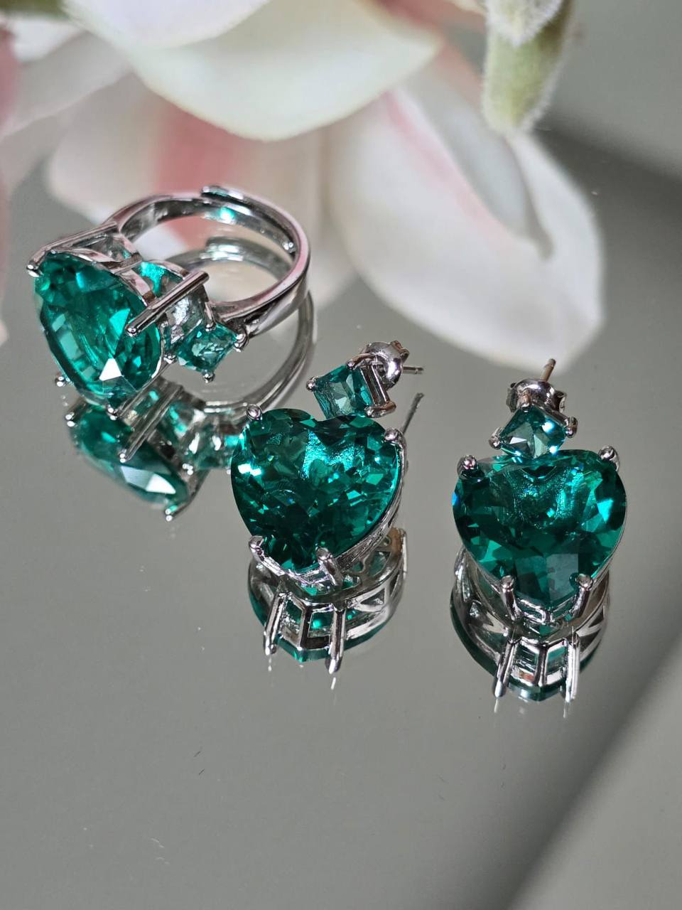 Элегантный сет из кольца, сережек-гвоздиков и подвески с lab изумрудами