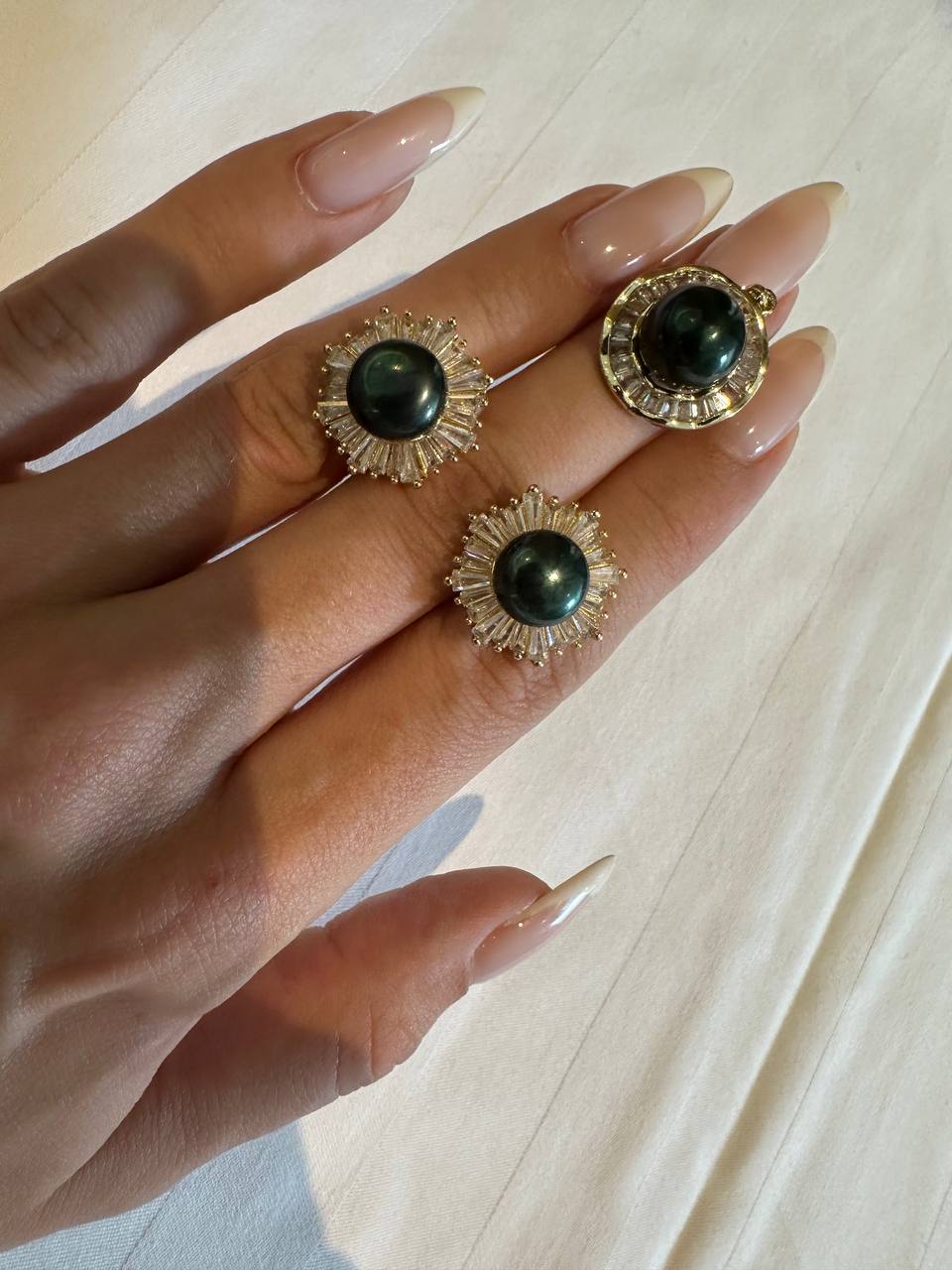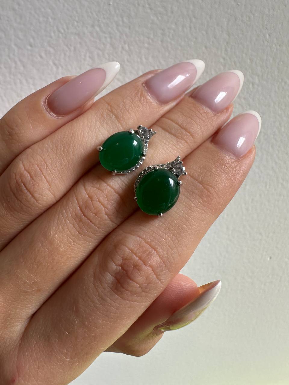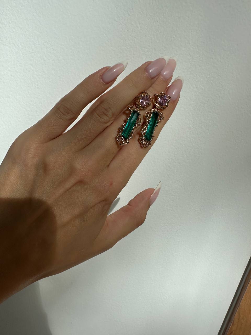 Элегантный сет из кольца, сережек-гвоздиков и подвески с lab изумрудами