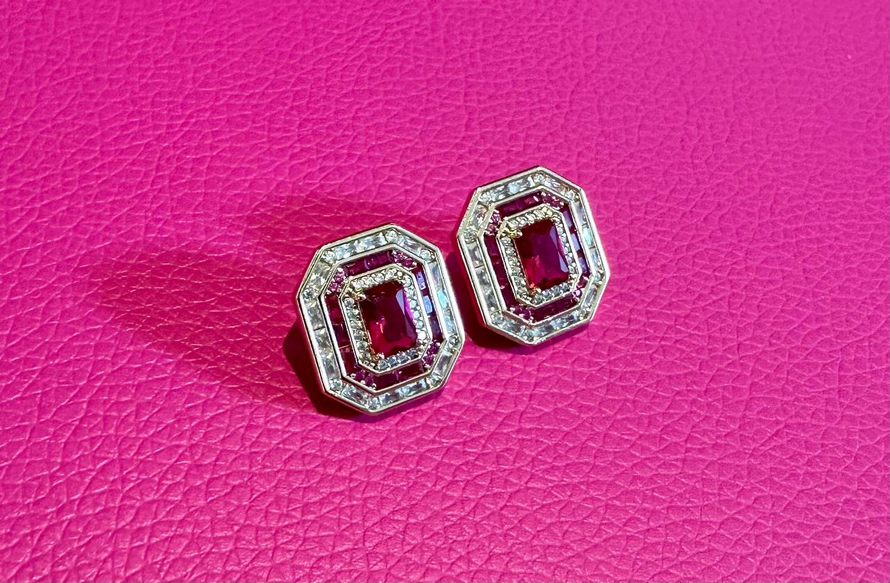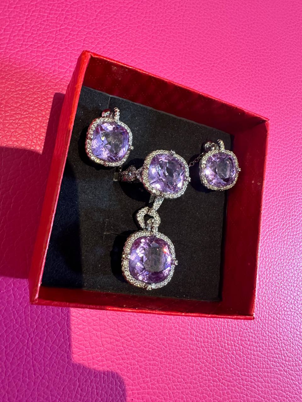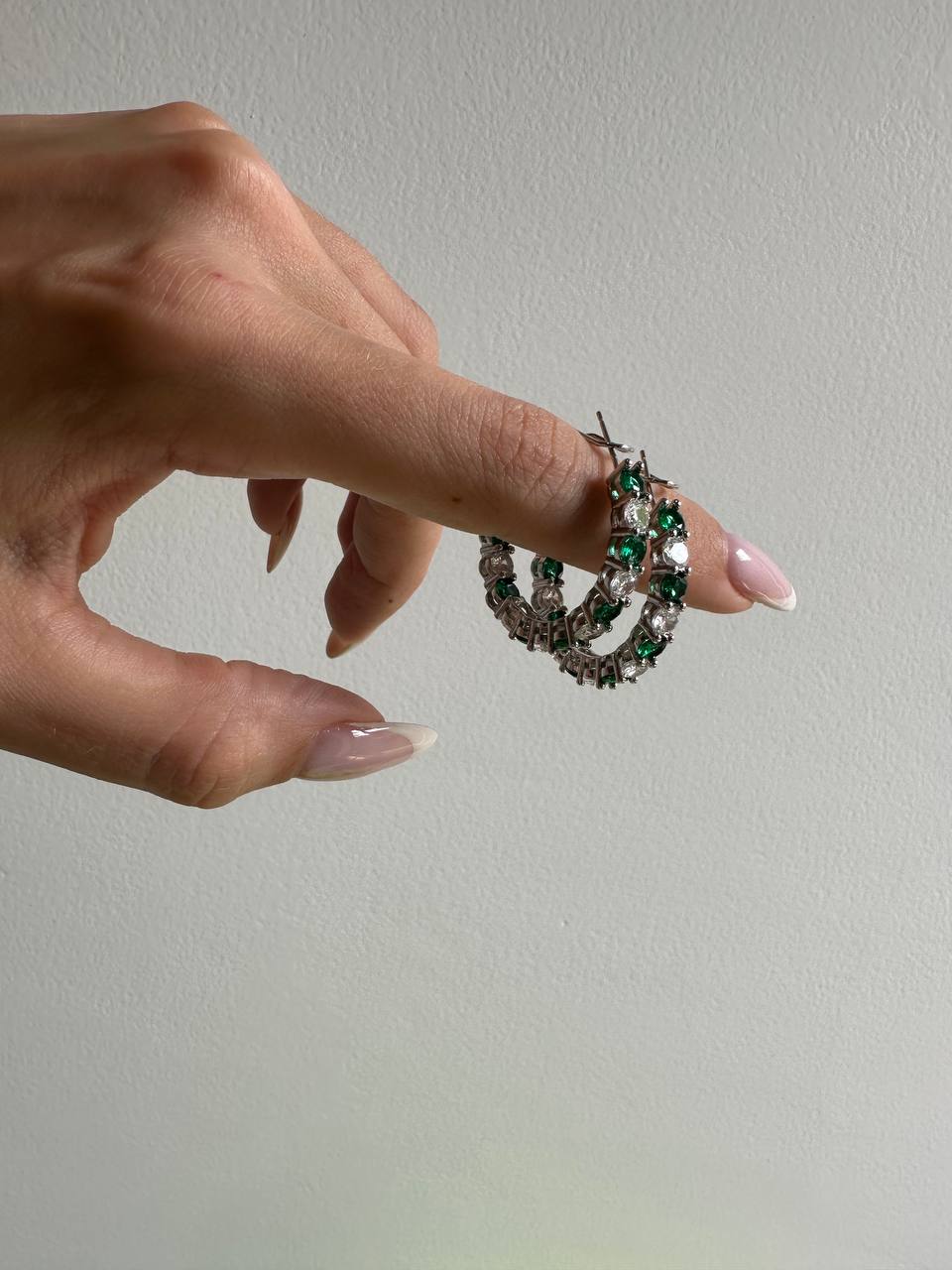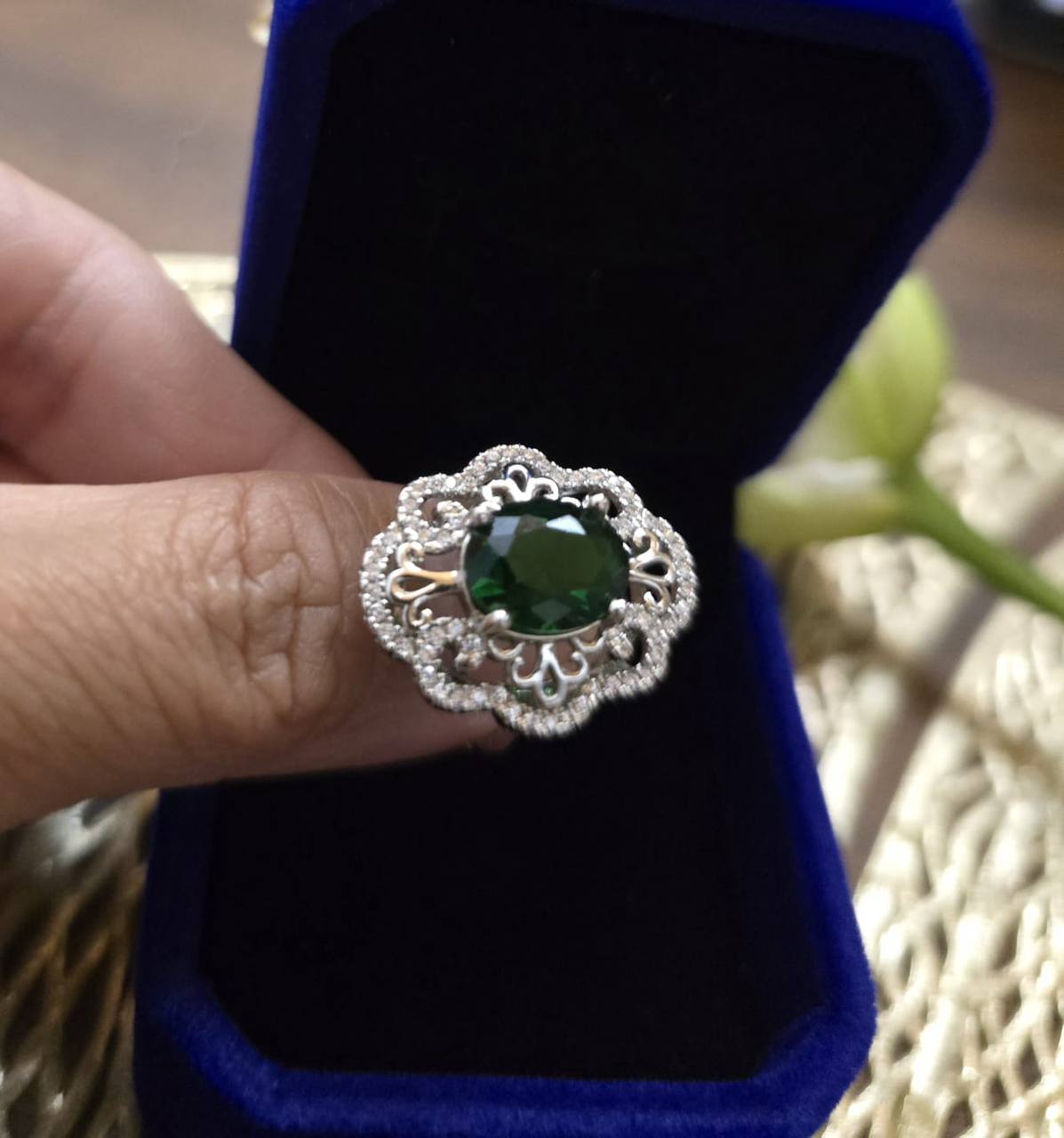 Элегантный сет из кольца, сережек-гвоздиков и подвески с lab изумрудами