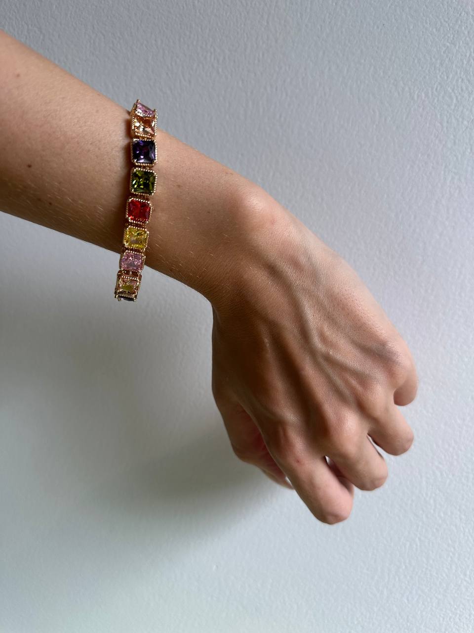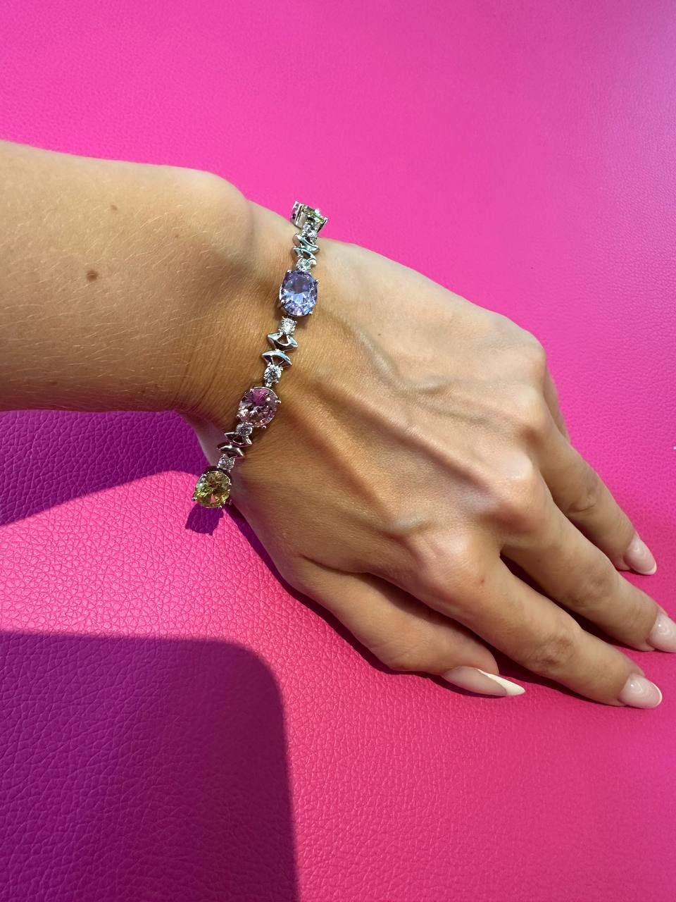 Браслет с цветными турмалинами, в обрамлении цирконов
