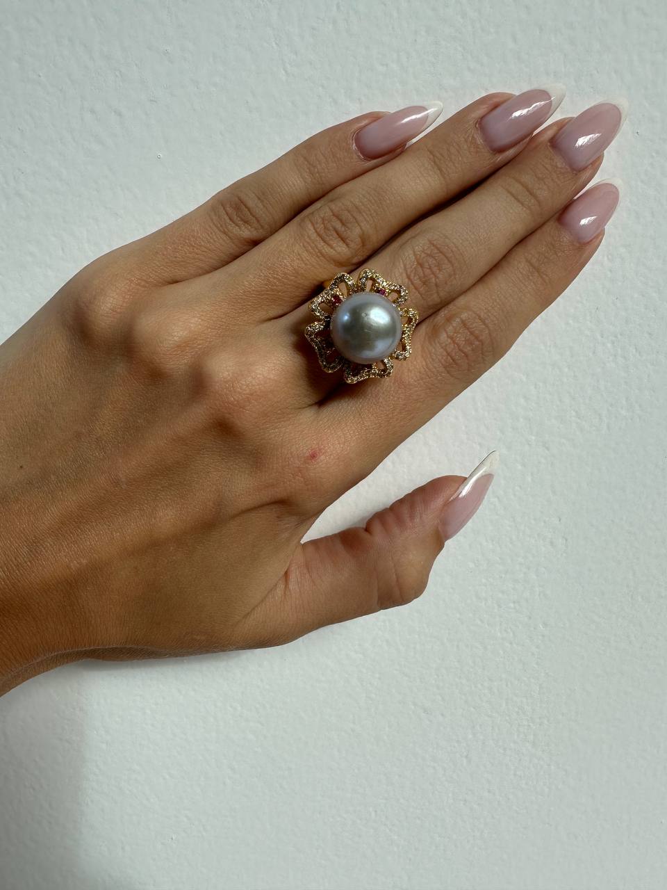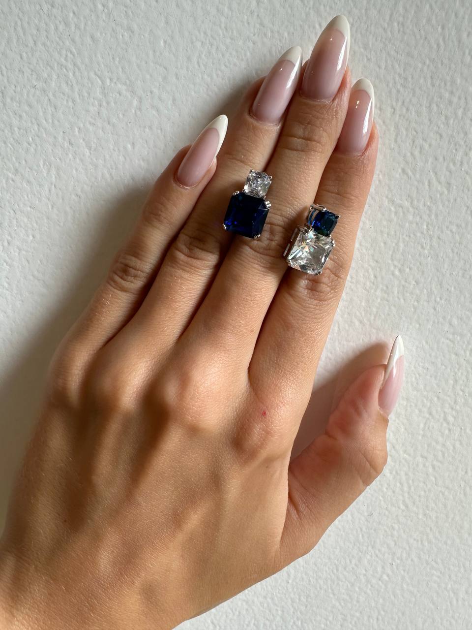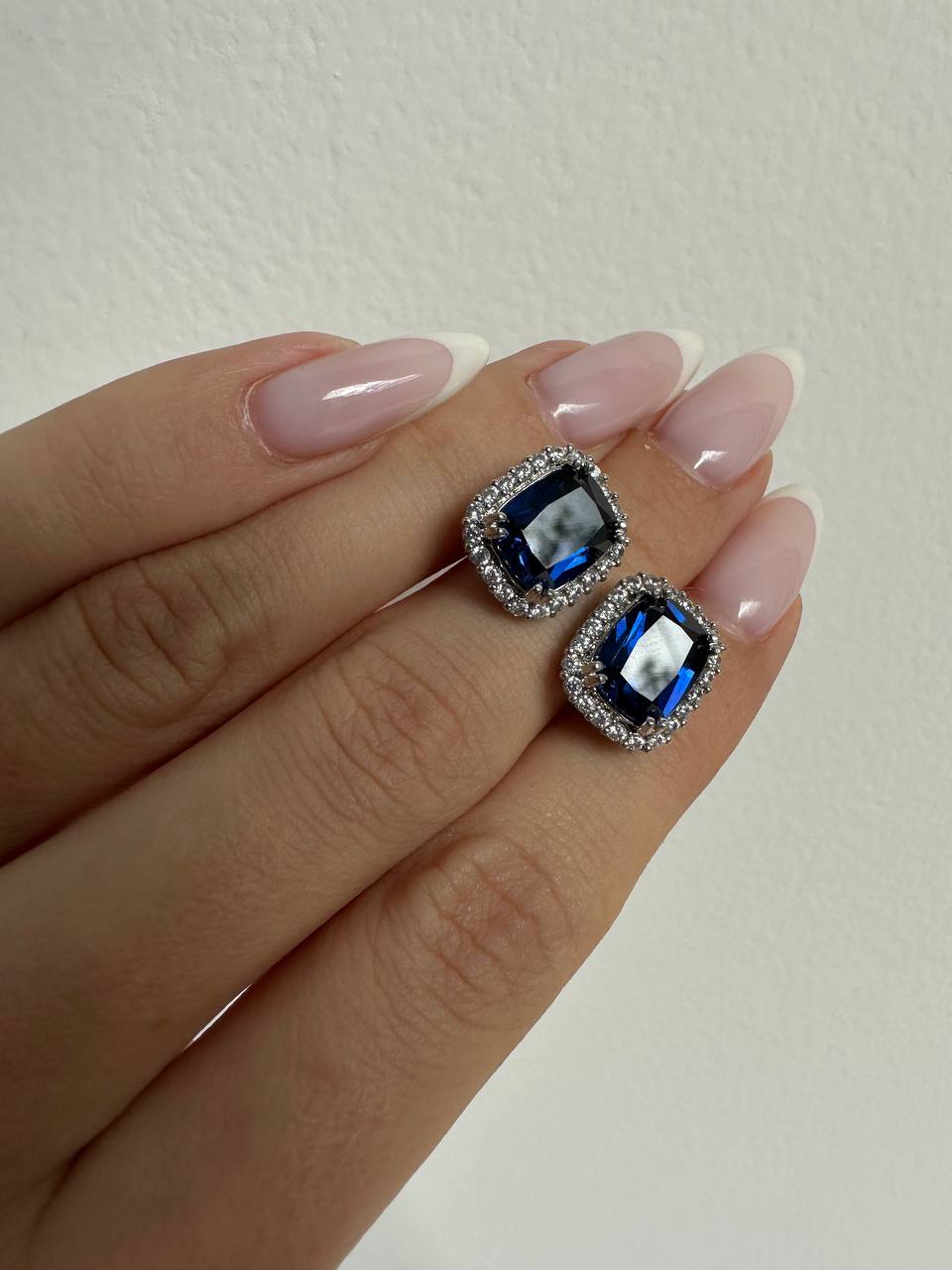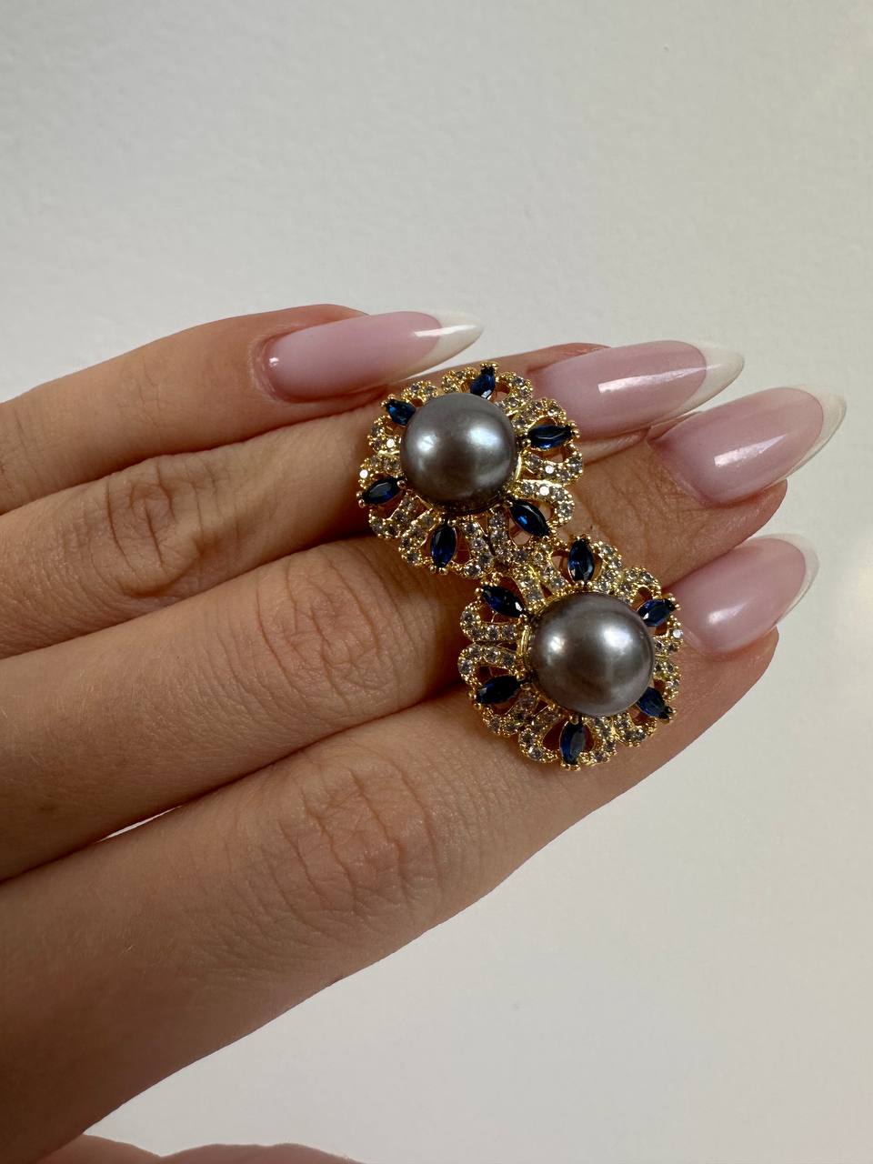 Серьги-гвоздикт с морским жемчугом и синими цирконами