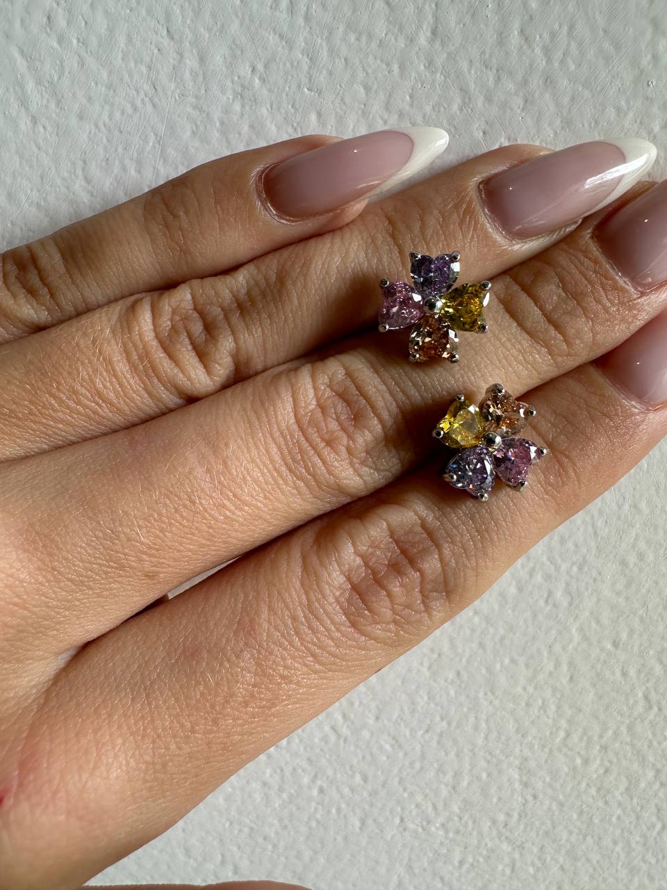 Серьги-гвоздики «клевер» с цветными турмалинами