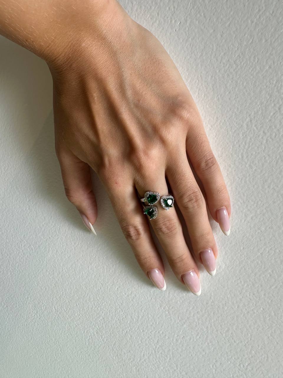 Кольцо с сердцами из изумрудов