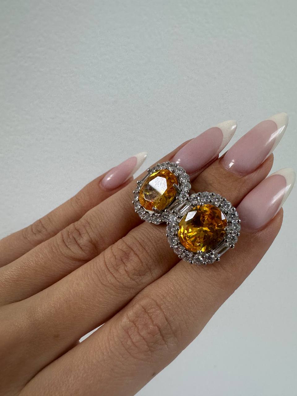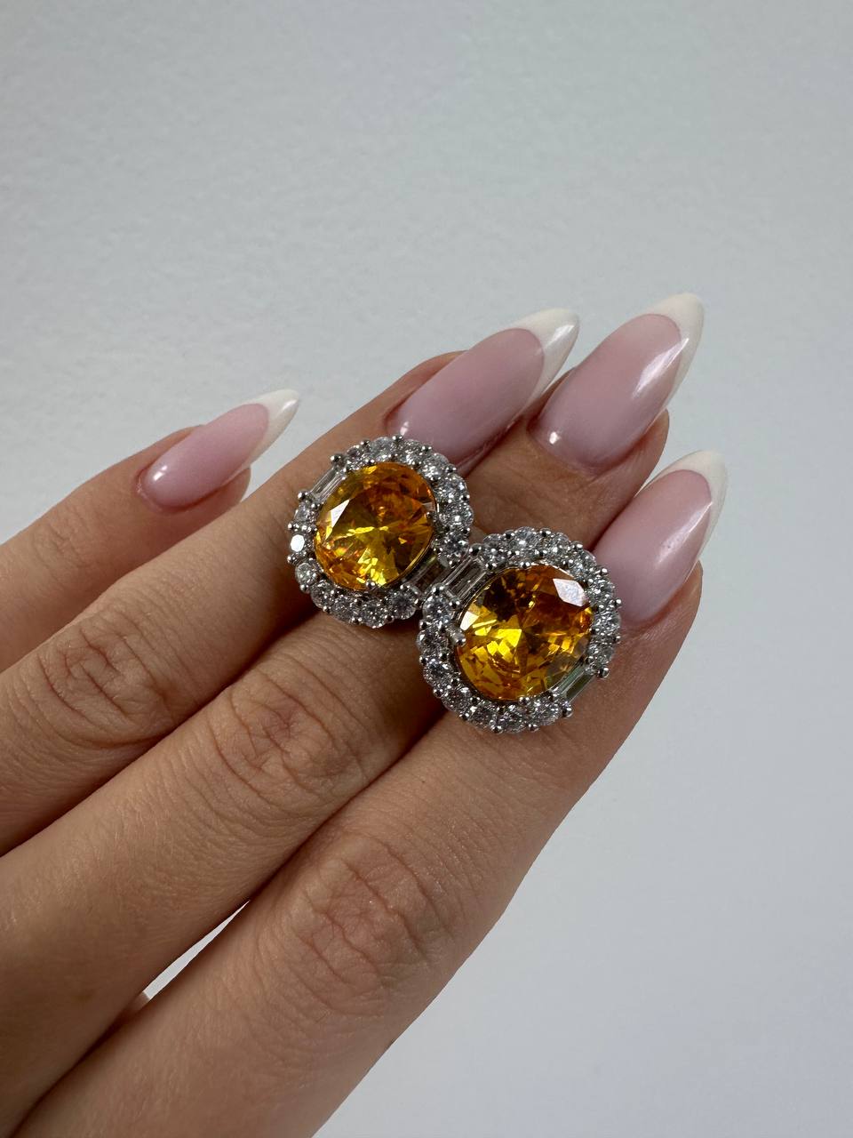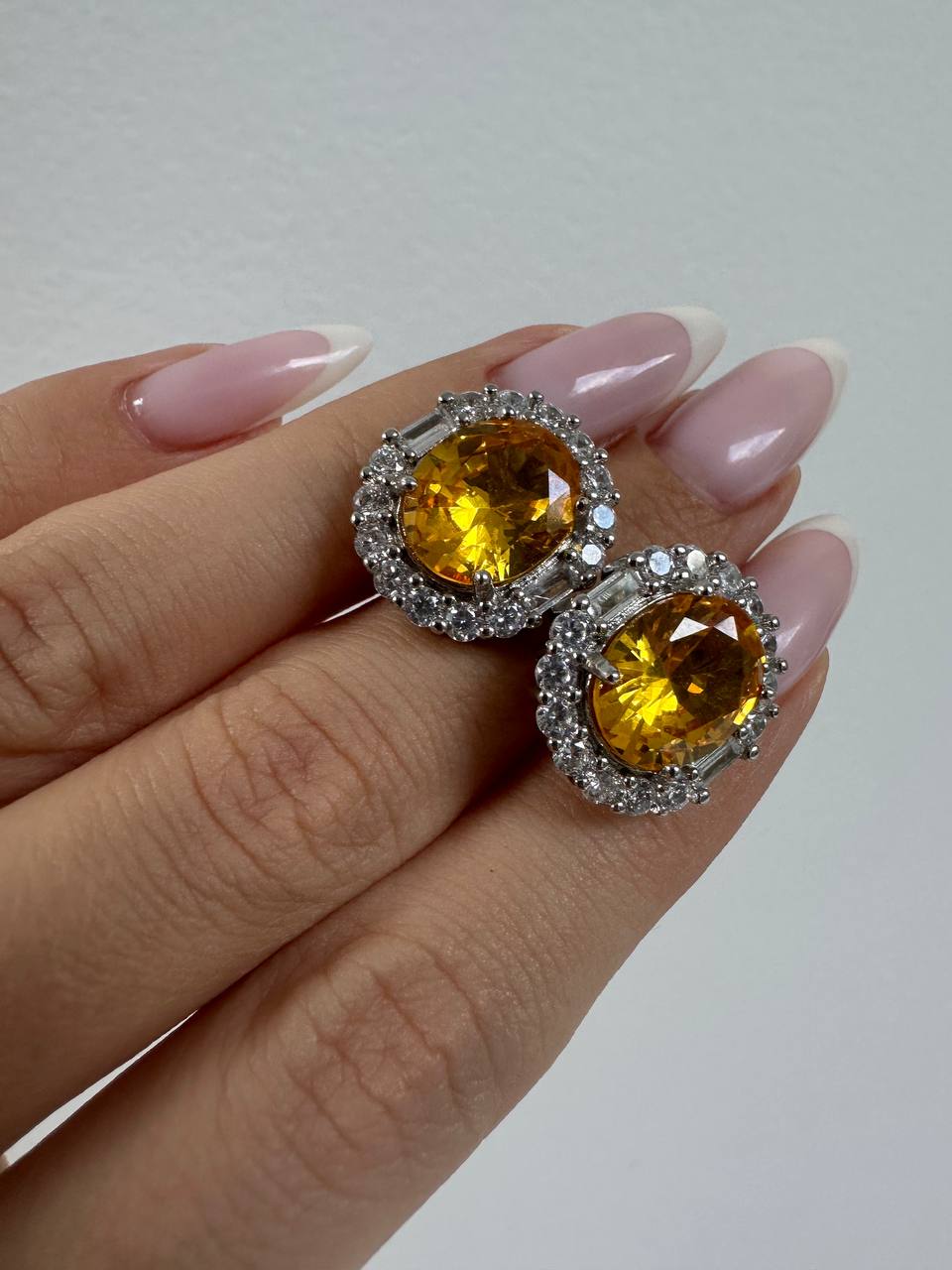 Серьги-гвоздики с желтым цитрином и цирконами